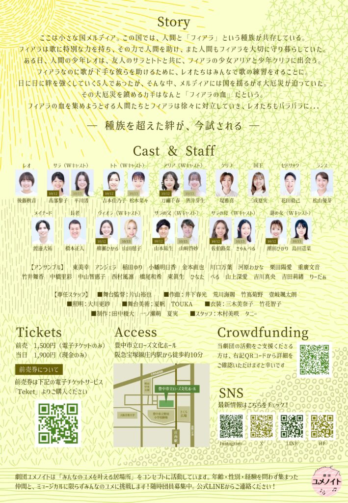 劇団ユメノイト初のオリジナルミュージカル『フィアラの歌』の第二弾フライヤーが完成&本日12:00より予約開始しました!