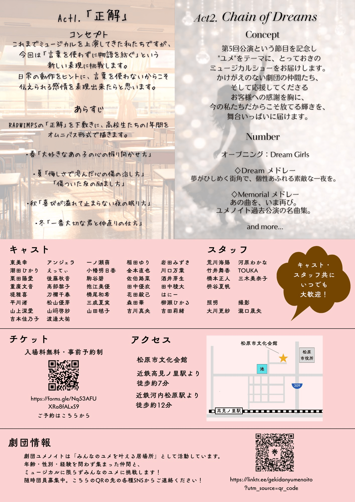 劇団ユメノイト第5回公演 『正解/Chain of Dreams』予約リンク